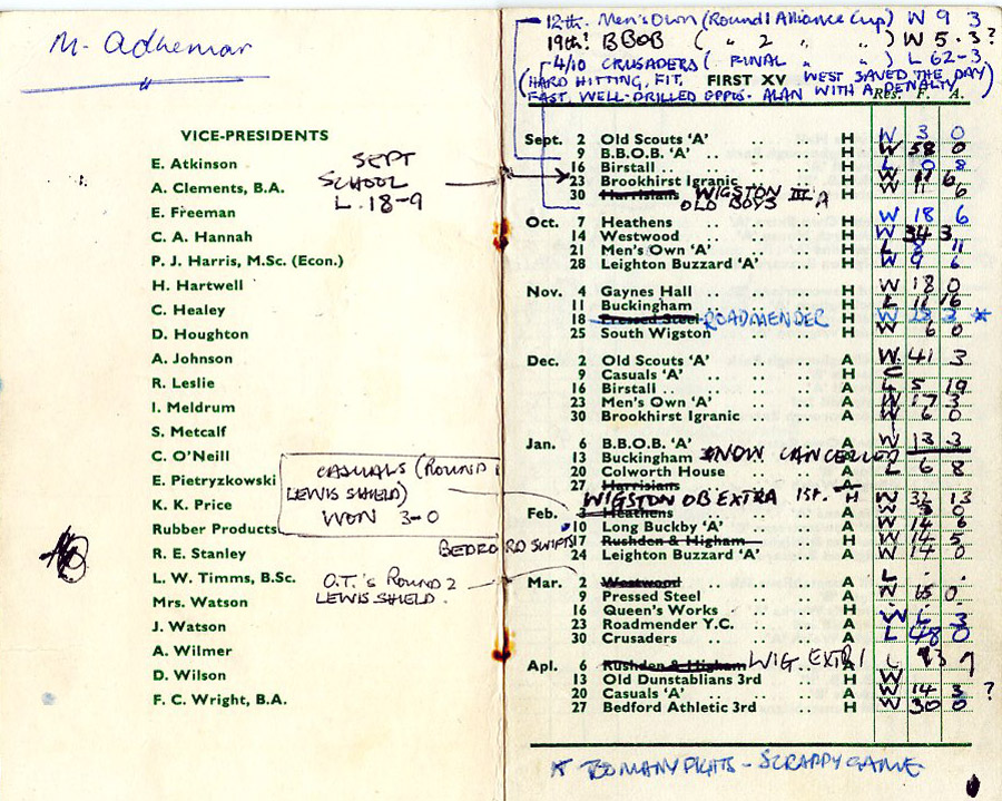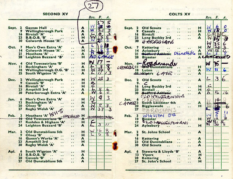 This area shall includes fixtures and results of some of the seasons played. Most of these have kindly been compiled by Ian Billson, our erstwhile Fixture Secretary for two thirds of our existence.